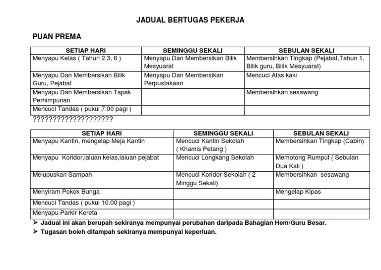 Contoh Jadual Kerja Pembersihan Pejabat Contoh Adat Otosection